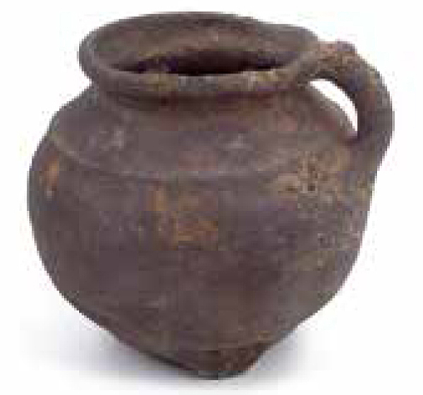 | 4b | bolle grape met licht uitstaande hals en afgeronde rand, ribbel op schouder, lobvoeten |