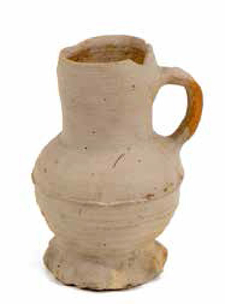 | 4b | biconische kan met buikknik met ribbel en hoge hals met rechte rand, op standring |