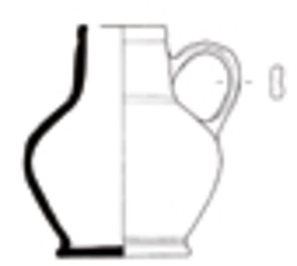 | 4b vorm | kan met afgeronde buikknik en iets toelopende hals met ribbel op halsaanzet en groef onderlangs rand, standvoet |