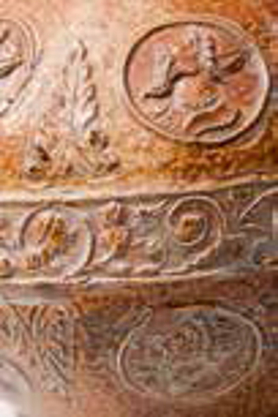 | 5c decoratie | medaillons met mannenportretten, acanthusbladeren, band op buik met krulwerk |