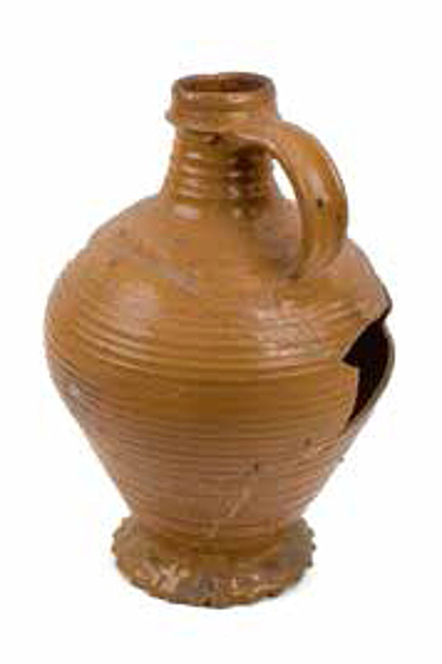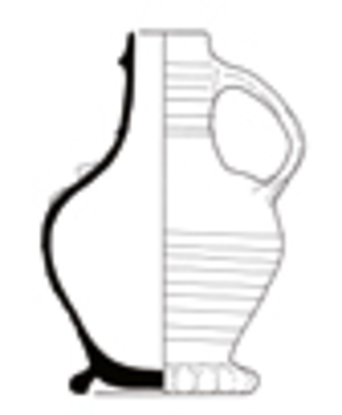 | 4b | bolle kan met afgeronde buikknik, schouder overgaand in hals, ribbels op schouder en hals, kraagrand, standring |