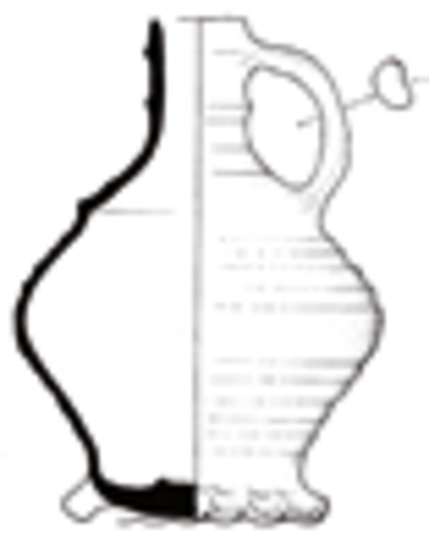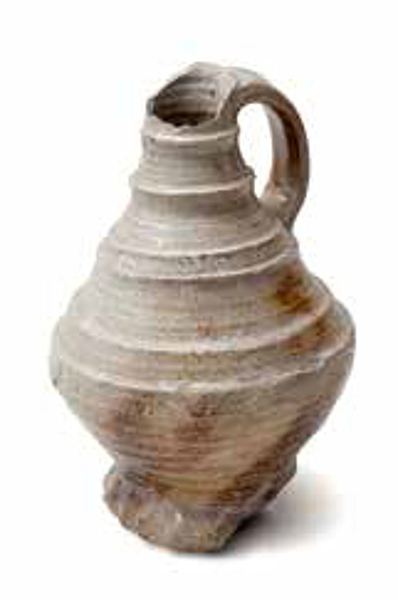 | 4b | bolle kan met afgeronde buikknik, schouder overgaand in hals, ribbels op schouder en hals, kraagrand, standring |