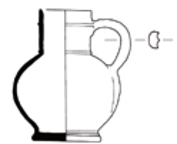 | 4b vorm | kan met kogelronde buik en cilindrische hals met bundels ribbels op de hals, uiteenlopende decoraties, soms tweedeling van de buik, standvoet |