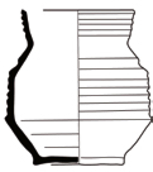 | 4b vorm | drieledige beker met conische onderzijde, vrijwel cilindrische buik en conische schouder en een uitstaande rechte rand, standvoet/-vlak |