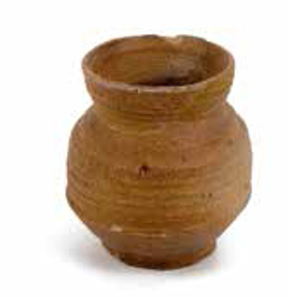 | 4b | drieledige beker met conische onderzijde, vrijwel cilindrische buik en conische schouder en een uitstaande rechte rand, standvoet/-vlak |