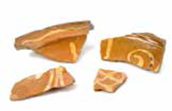 | 5c decoratie | slibversiering: slinger op vlag en krulmotieven op spiegel in gele slib |