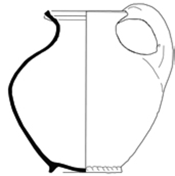 | 4b | bolle kan met afgeronde buikknik en uitstaande hals en driehoekig verdikte rand met lip aan binnenzijde, standring |