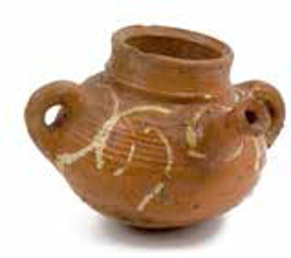 | 5c | boogjes in gele slib, ribbel op overgang van schouder naar hals Ø 10.5cm |