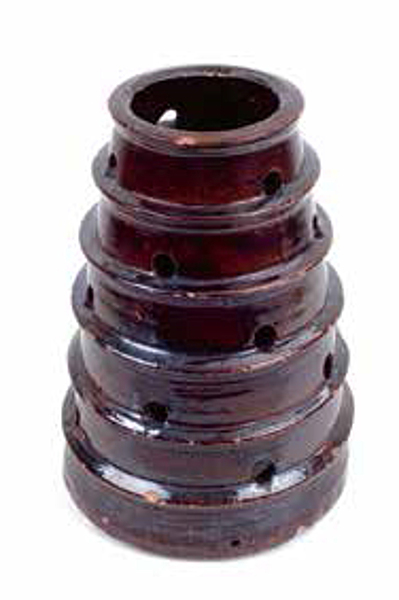 | 4b | hoge, taps toelopende selderijpot met ribbels op een doorboorde wand en een verdikte rand, standvlak met lage brede poten |