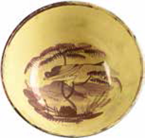 | 5c | overglazuur goudlusterbeschildering: landschap met vogel bovenglazuur goud |