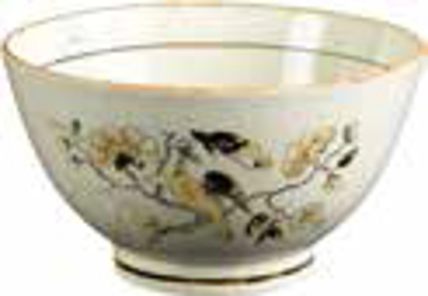 | 5c | overglazuur zwart drukdecor met polychrome beschildering: fazant op boomtak en bloemen polychroom |