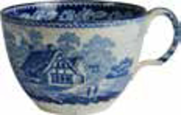 | 5c | onderglazuur blauw drukdecor: figuren bij herberg ('Timdered cottage') blauw |