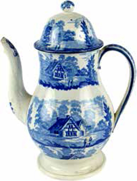 | 5c | onderglazuur blauw drukdecor: figuren bij herberg ('Timbered cottage') blauw |