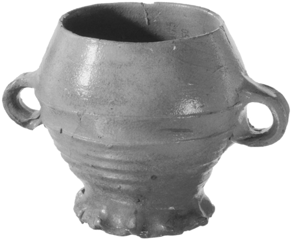 | 4b | afgeronde biconische beker met rechte rand, oren op buikknik, standring |