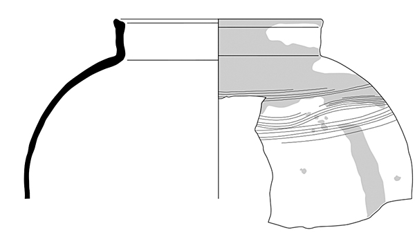 | 4b | brede pot met hoge schouder zonder hals, manchetrand, lobvoeten |