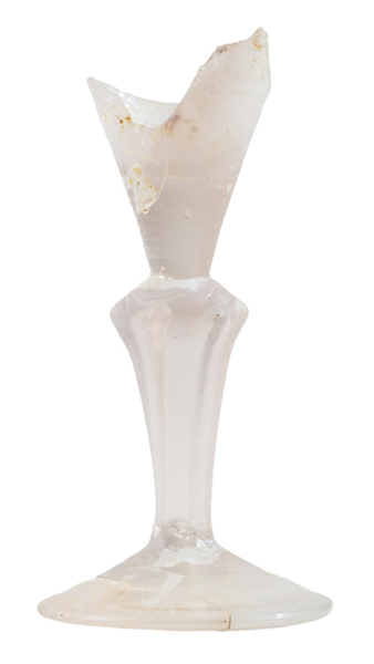 | 4b | trechtervormig kelkglas met dikwandige bodem veelzijdige stam van vijf of meer zijden met luchtbel, ook met diamanten op de schouders, voet met pontilmerk |