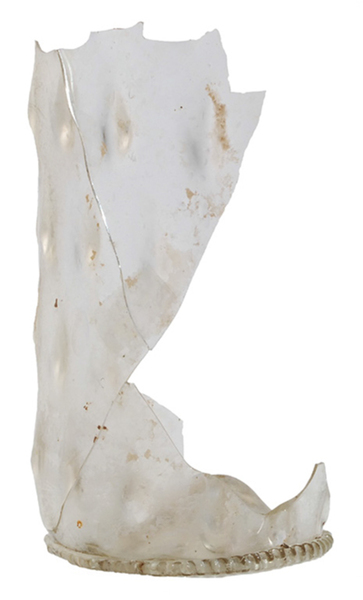 | 4b vorm | cilindrische of licht conische beker met uitstaande (a) of rechte (b) lip met knobbelpatroon in reliëf, opgestoken bodem met pontilmerk, voetring |