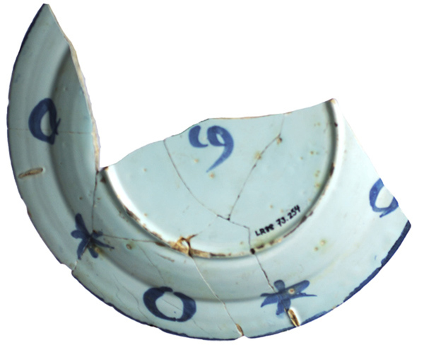 | 5c | blauwe beschildering, decor ontleend aan laat kraak- / overgangsporselein blauw |