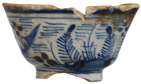 | 5c decoratie | kobaltblauwe beschildering: fries met sterk gestileerde landschappen (rechtstreeks ontleend aan Chinees porselein) blauw |