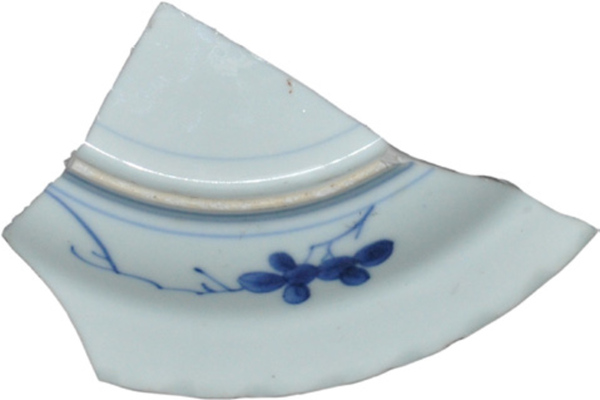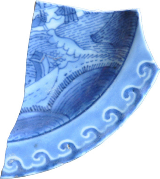 | 5c | Nederlands dorpslandschap (zogenaamd Scheveningendecor), op vlag: golfmotief onderglazuur blauw |