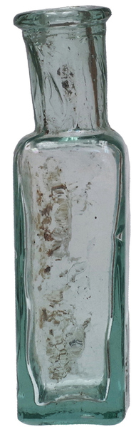 | 4b vorm | kleine hoge vierzijdige of licht rechthoekige fles met korte cilindrische of licht conische hals en verdikte lip, standvlak of licht opgebolde bodem, contactvorm met naden |