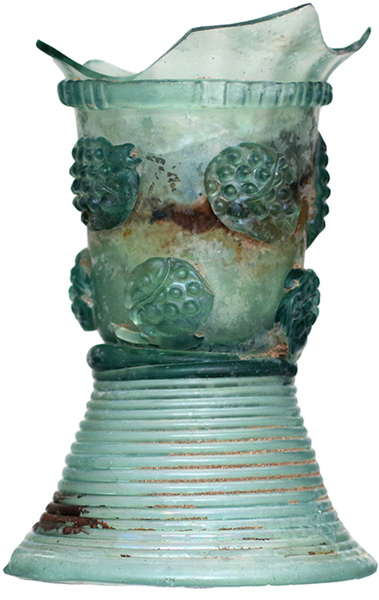| 4b | roemer met ei- of tonvormige cuppa, geribde draad op de overgang naar de schacht en één of meer verspringende rijen braamnoppen, opgestoken bodem met pontilmerk, gewonden draadvoet |