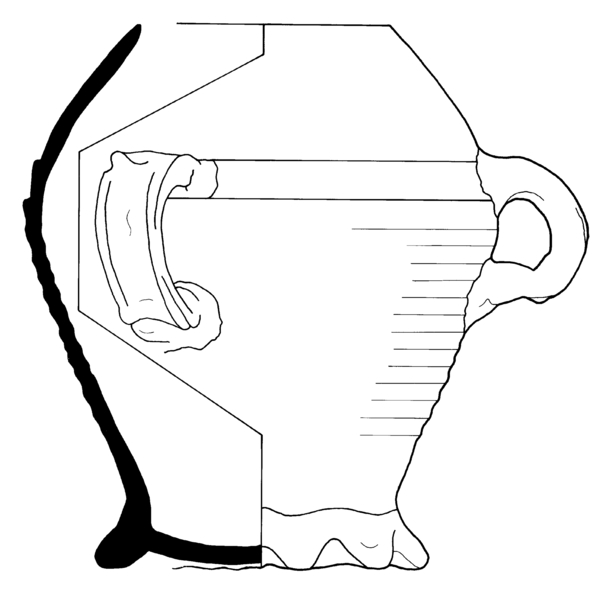 | 4b | afgeronde biconische beker met rechte rand, oren op buikknik, standring |