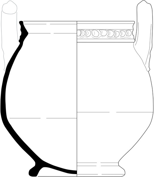 | 4b | pot met afgeronde buikknik en kraagrand met dekselgeul, standring |