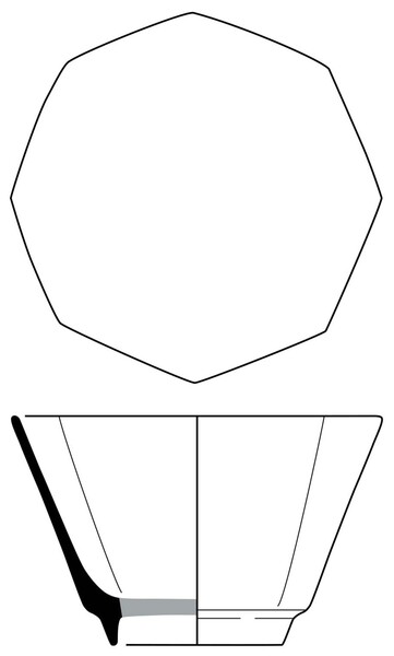 | 4b | in mal gevormde meerzijdige kop met plooiwand en rechte rand, standring, zonder oor |