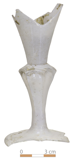 | 4b | trechtervormig kelkglas met dikwandige bodem veelzijdige stam van vijf of meer zijden met luchtbel, ook met diamanten op de schouders, voet met pontilmerk |