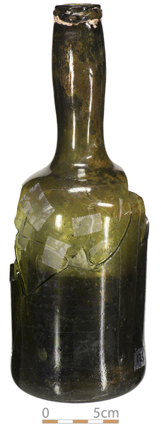 | 4b | cilindrische wijnfles met lange hals, opgestoken bodem met pontilmerk |