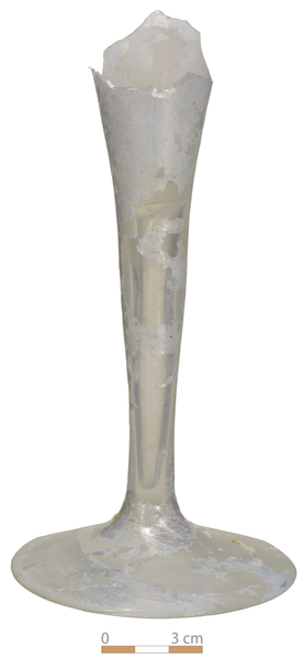 | 4b | trechtervormig kelkglas vloeiend overgaand in rechte stam, voet met pontilmerk, diverse sieruitvoeringen van stam |