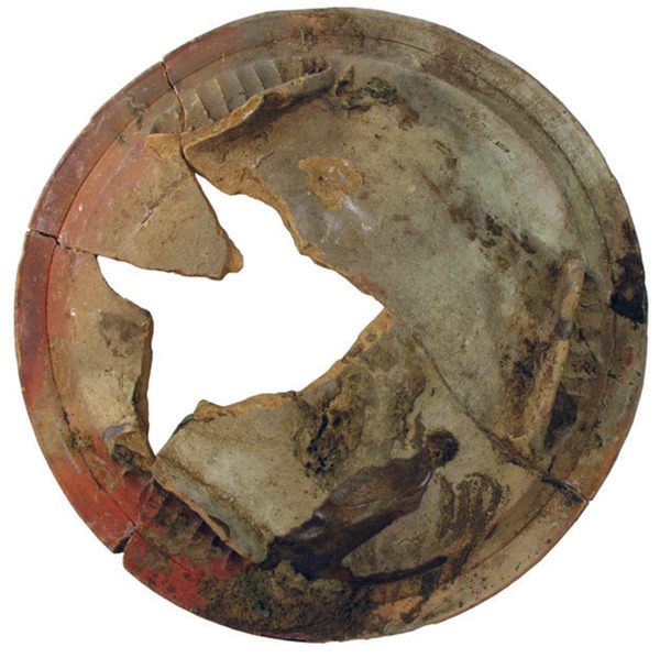 | 5c | witte sliblijnen: een kruis (twee gekruiste lijnen) binnen een cirkel op de spiegel |