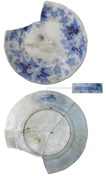 | 5c | geverfd decor, blauw en goud: bladeren/klimop |