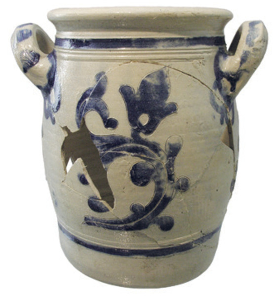 | 5c | snijwerk, kobaltdecoratie: blauwe lijnen en plantenmotieven blauw |