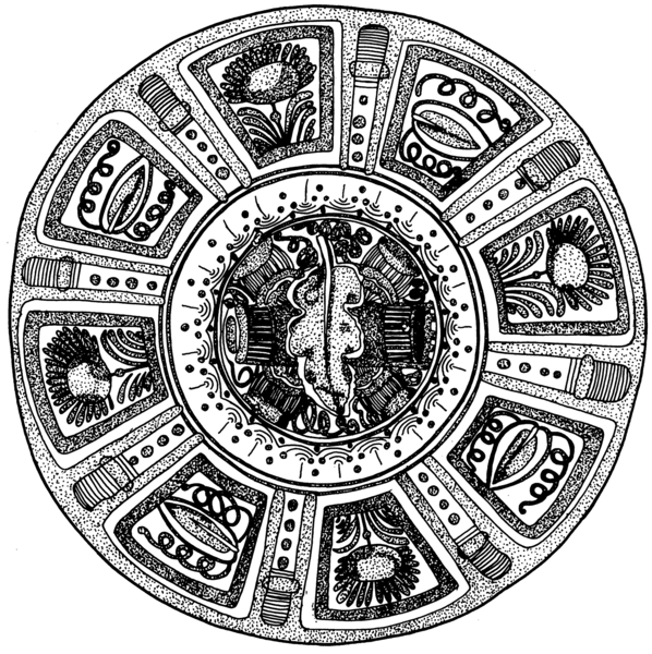 | 5c | Beschildering Wan-Li stijl vakverdeling, middenin artemisiablad en papyrusrollen. blauwe beschildering |