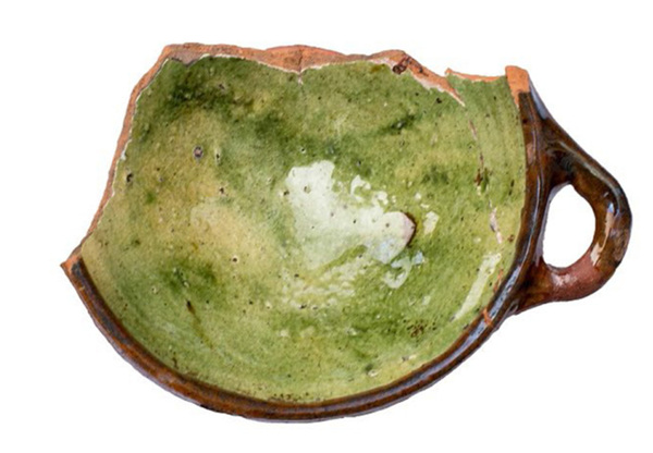| 5c decoratie | groen glazuur over witte sliblaag |