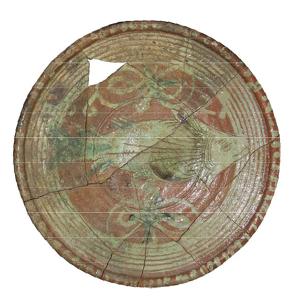 | 5c decoratie | ringeloorversiering, kabelrand, op vlag: concentrische cirkels; op spiegel: vis en jaartal 1621 |