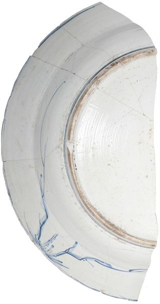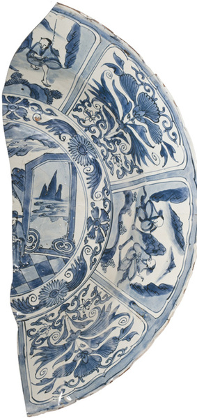 | 5c | vlag: vakverdeling, florale en landschappelijke motieven; spiegel: interieur met Chinees onderglazuur blauw |