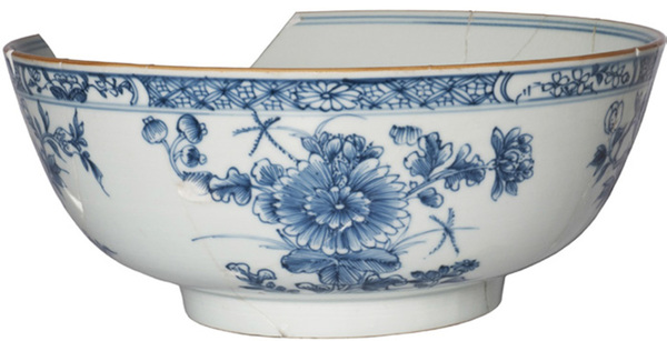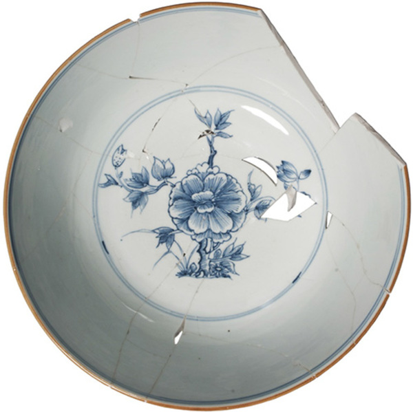 | 5c | floraal motief, bruine rand onderglazuur blauw |