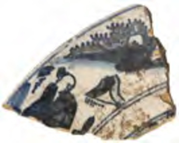 | 5c decoratie | blauwe beschildering, vlag: Chinezen in landschap blauw |
