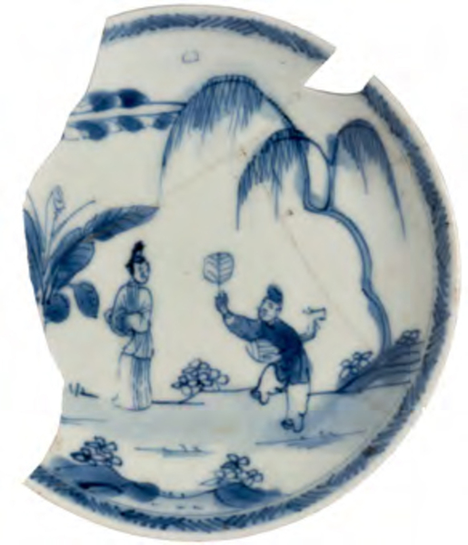 | 5c decoratie | blauwe beschildering onderglazuur blauw |