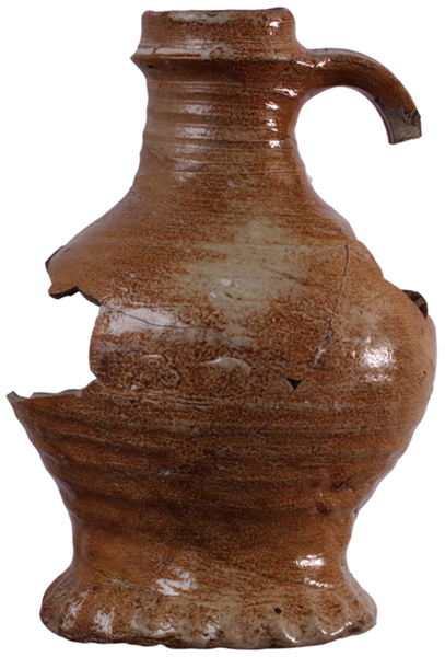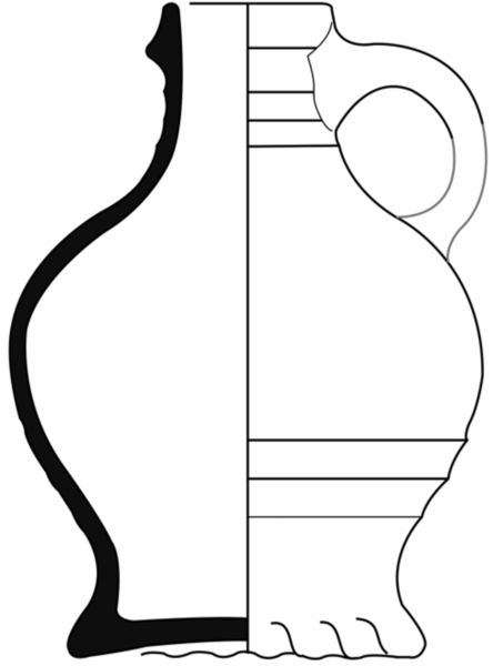 | 4b | bolle kan met afgeronde buikknik, schouder overgaand in hals, ribbels op schouder en hals, kraagrand, standring |