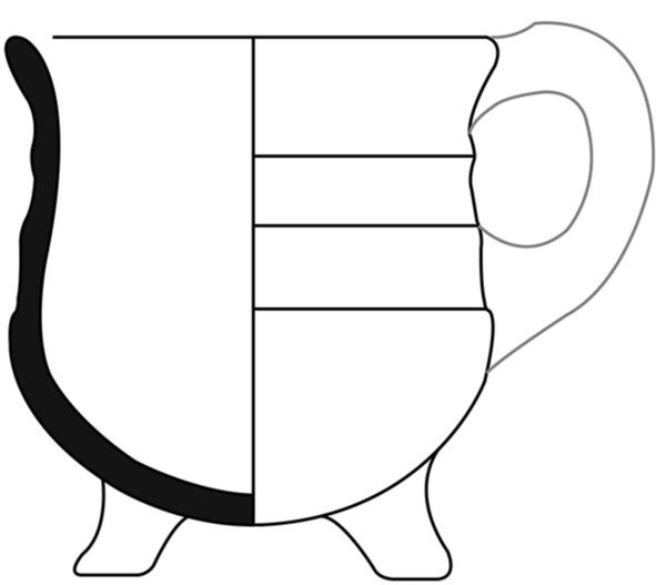 | 4b vorm | hoge grape met afgeronde buik en één of meerdere ribbels op wand, licht uitgebogen rechte rand |