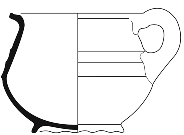 | 4b | hoge pispot met scherpe buikknik en diverse ribbels op schouder, uitgebogen tot omgeknikte rechte (aan zijkant aangedrukte) rand, standring |