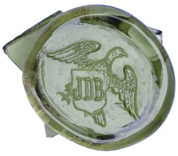 | 5d diversen | 'glaszegel' met beeldmerk op buik: duif met schild met daarop de letters JDB |