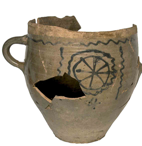 | 4b | hoge conische pot met afgeronde buikknik en omgeslagen, aan de bovenkant afgeplatte rand, standvlak |