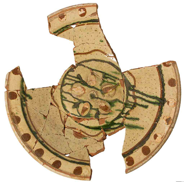 | 5c decoratie | sgraffito: bloem wit slib, groen |