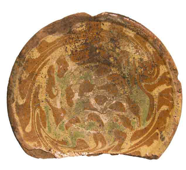| 5c decoratie | slibversiering: gemarmerd wit slib, groen |