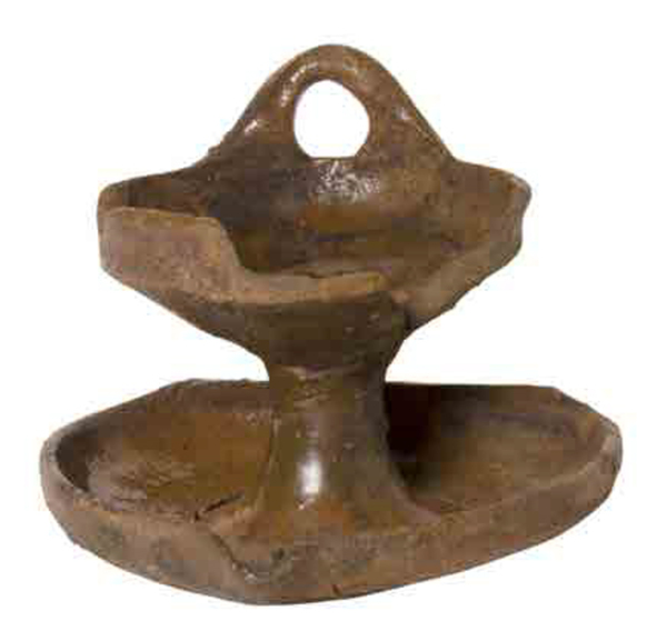| 4b | olielamp met twee schalen en stam, een worstoor, lekschaal afgeplat, geknikte rand |